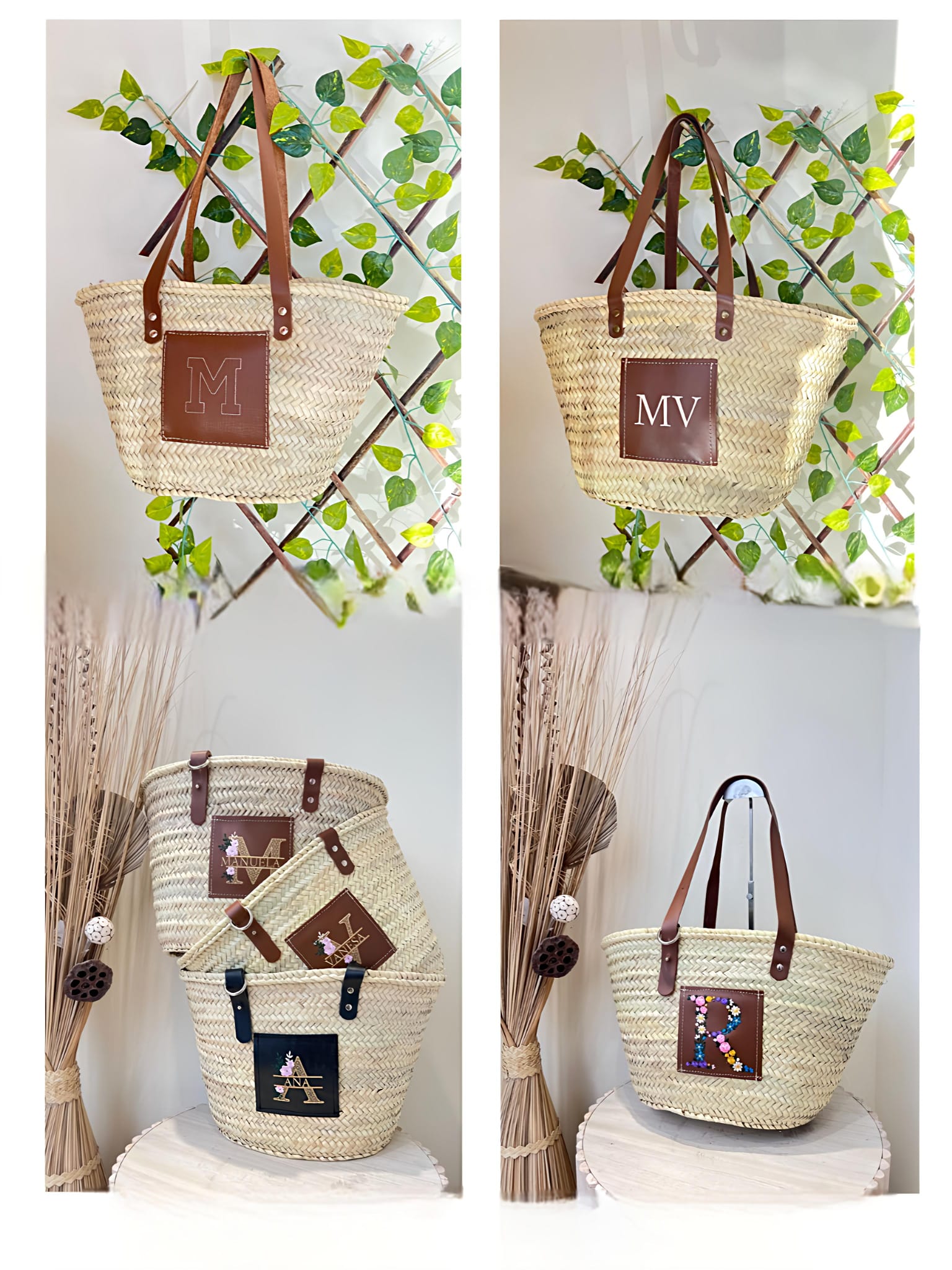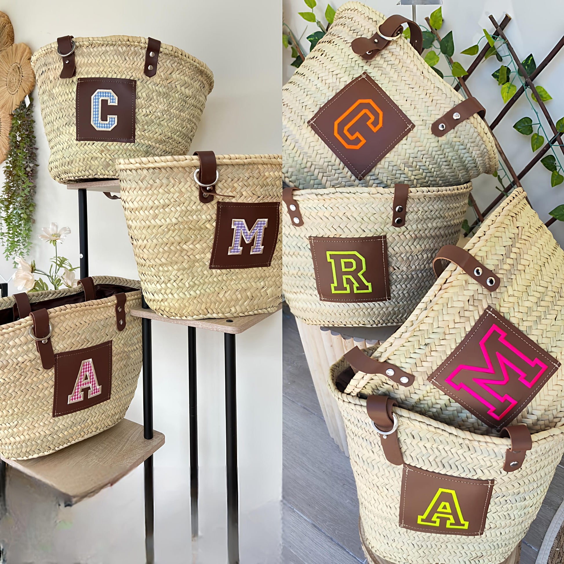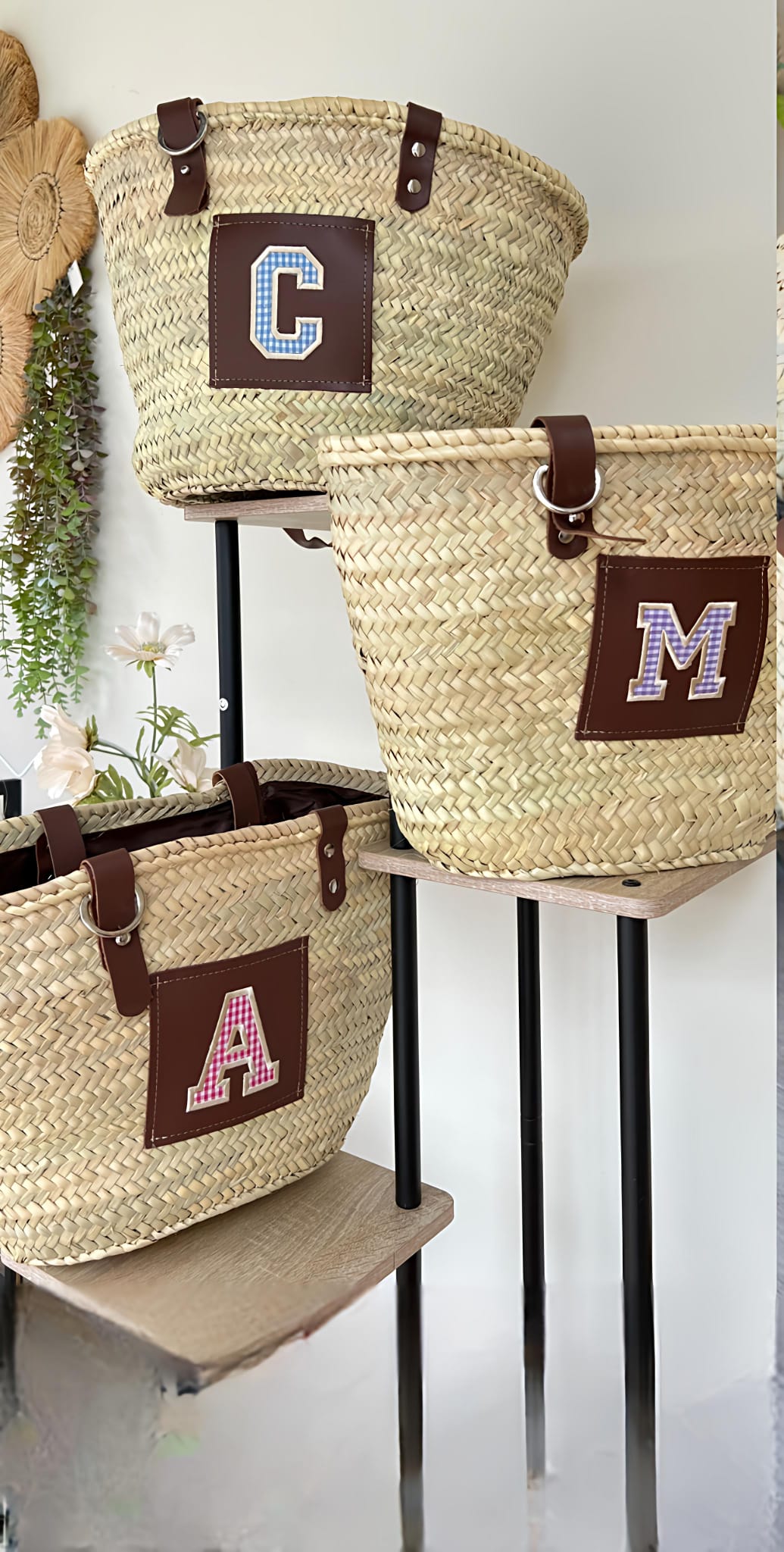 Capazo de palma natural con saco, detalles en cuero sintético y letra personalizada. Ideal para llevarlo a la playa, de paseo o para darle un toque único a tu look diario. Cómodo, ligero y con mucho estilo.