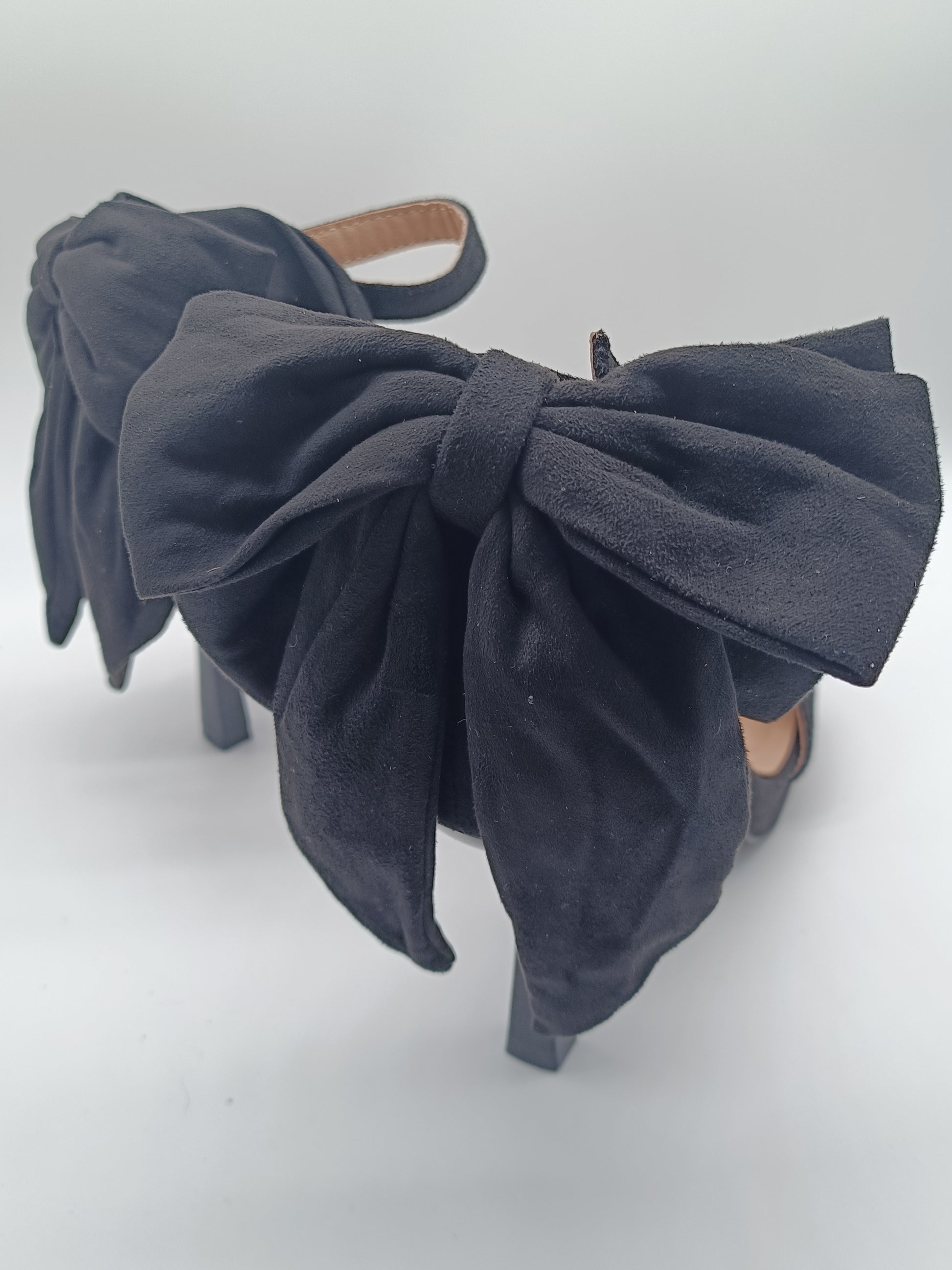 Sandalia de ante con tacón de 8cm, con pulsera al tobillo y llamativo lazo trasero que aporta un toque femenino y sofisticado.
